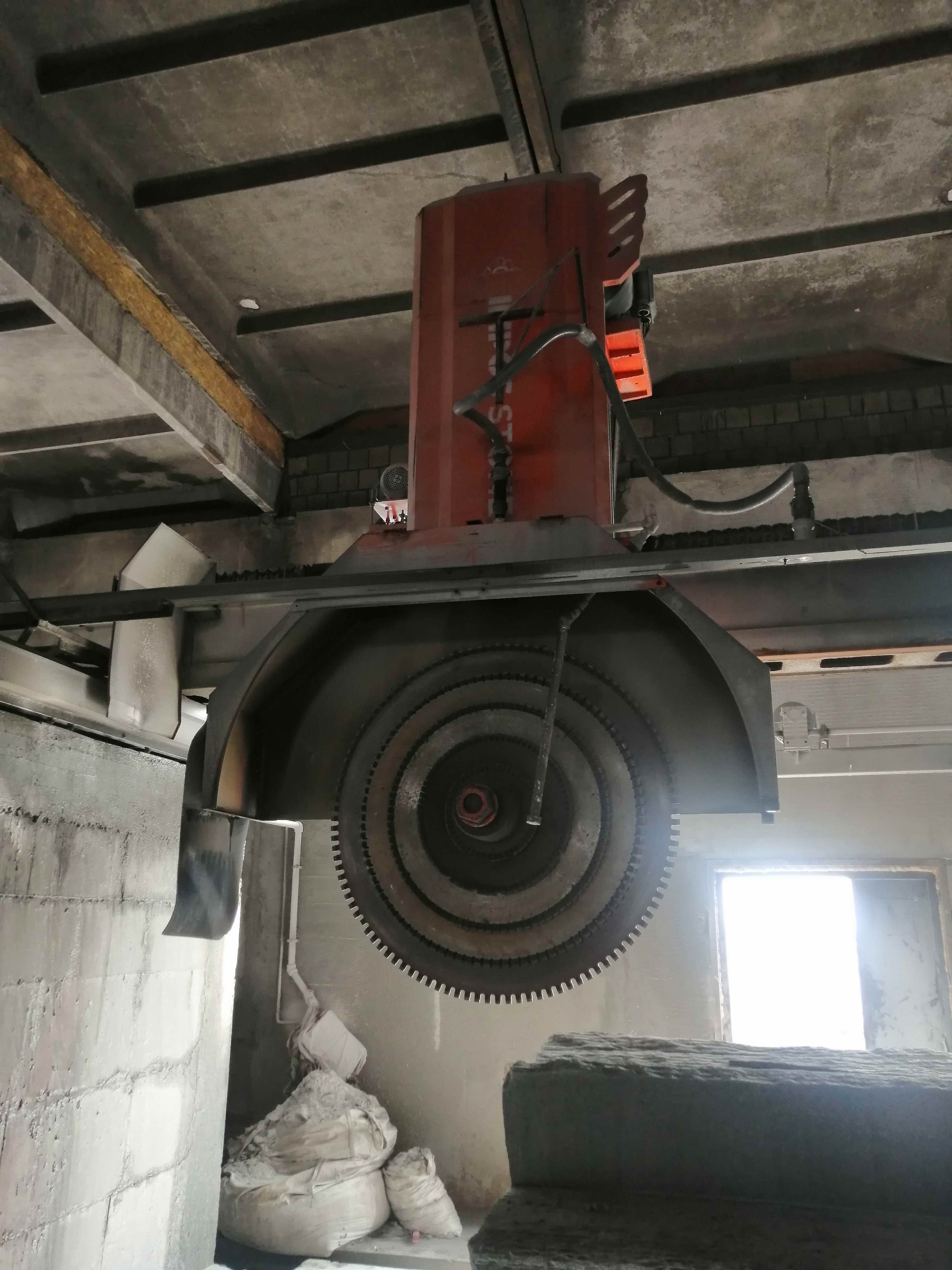 Распиловочный мостовой станок JC-2000 для раскроя плит из природного камня и подобных материалов. В качестве режущего инструмента станка используется пила либо пакет пил диаметром до 2000 мм с алмазным сегментом.