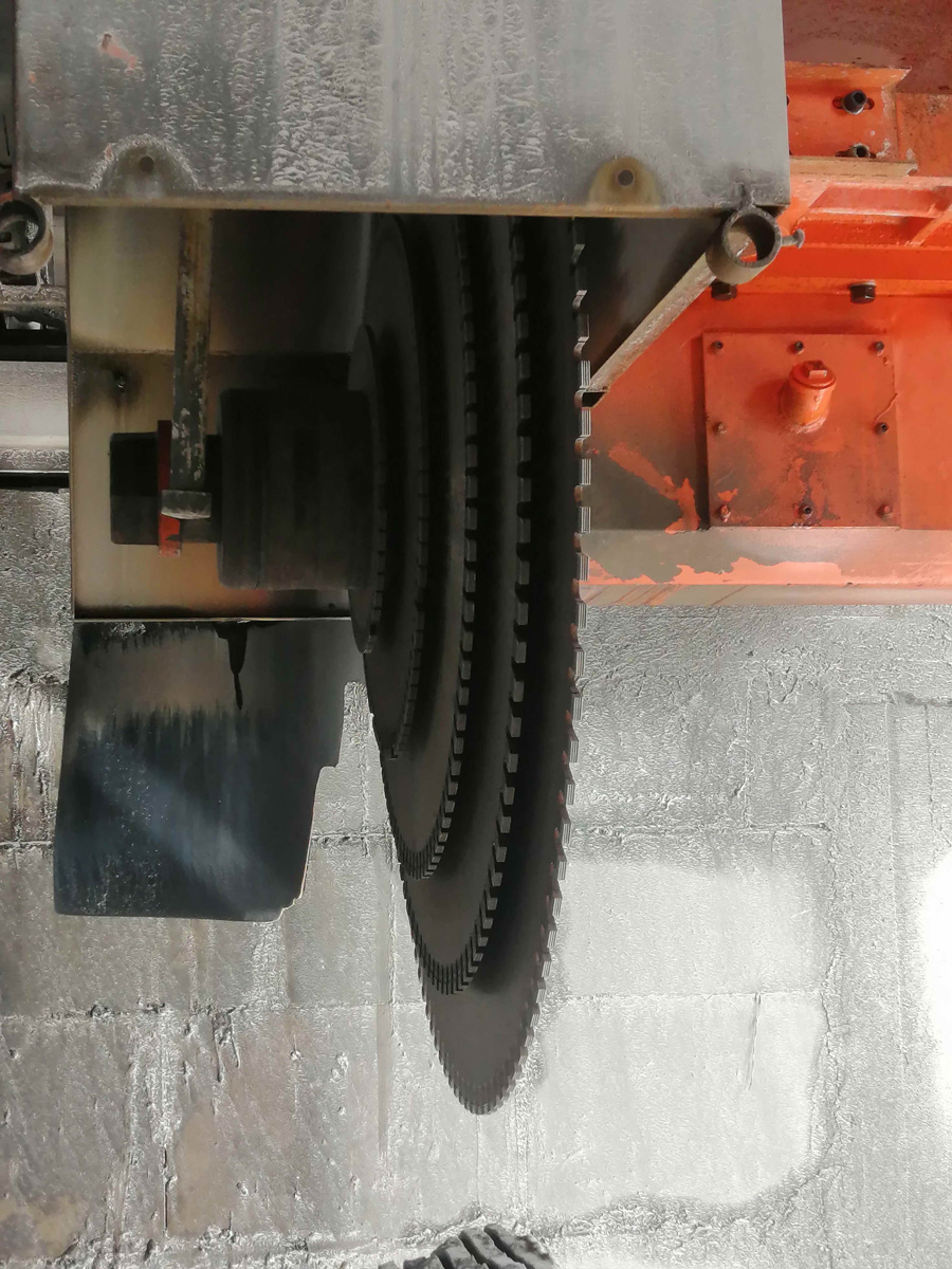 Распиловочный мостовой станок JC-2000 для раскроя плит из природного камня и подобных материалов. В качестве режущего инструмента станка используется пила либо пакет пил диаметром до 2000 мм с алмазным сегментом.