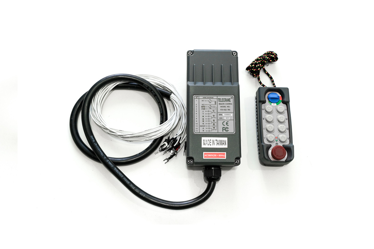 Дистанционный пульт управления, 6 управляющих функциями клавиш (всего 8 клавиш), расстояние до точки управления - 100 м, водонепроницаемый, 380 VAC 50-60 Гц.