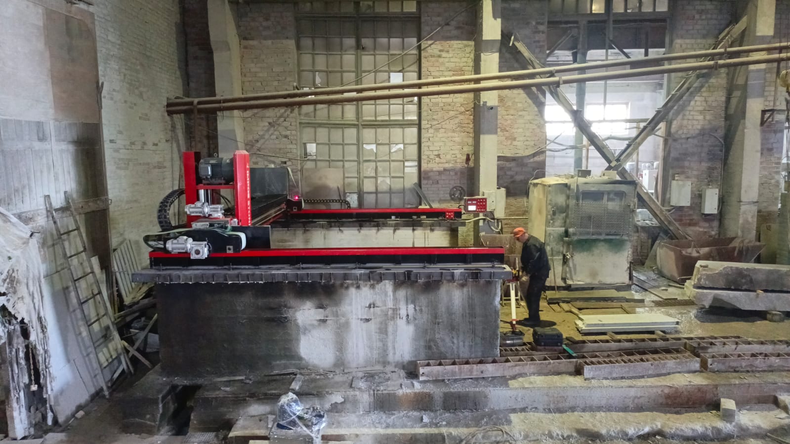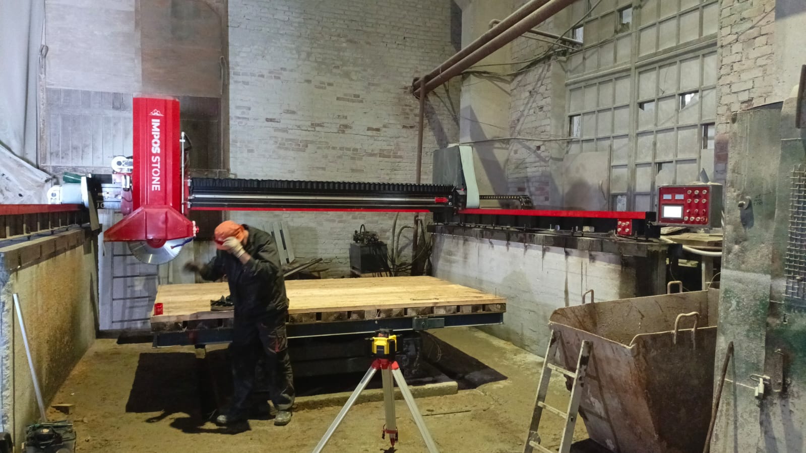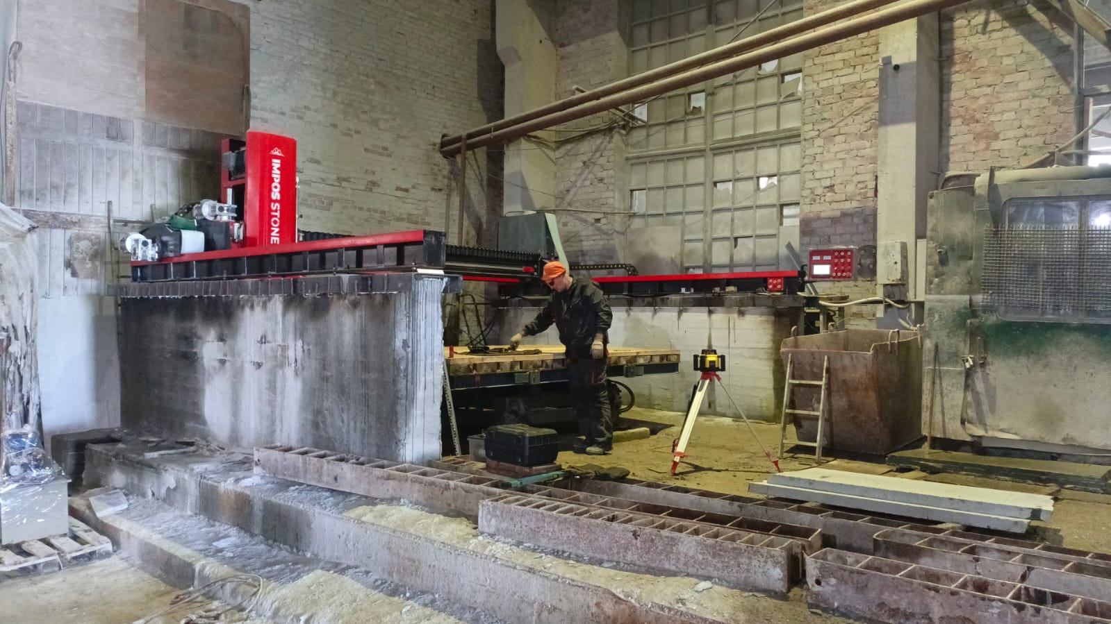 Для увеличения производительности появился запрос на оборудование. В ходе подбора оборудования нами был предложен мостовой станок JC-700 для раскроя плит из природного камня и подобных материалов. В качестве режущего инструмента станка используется алмазный диск размером от 350 до 700мм, дополненный лазерным визиром для задания направления линии реза.